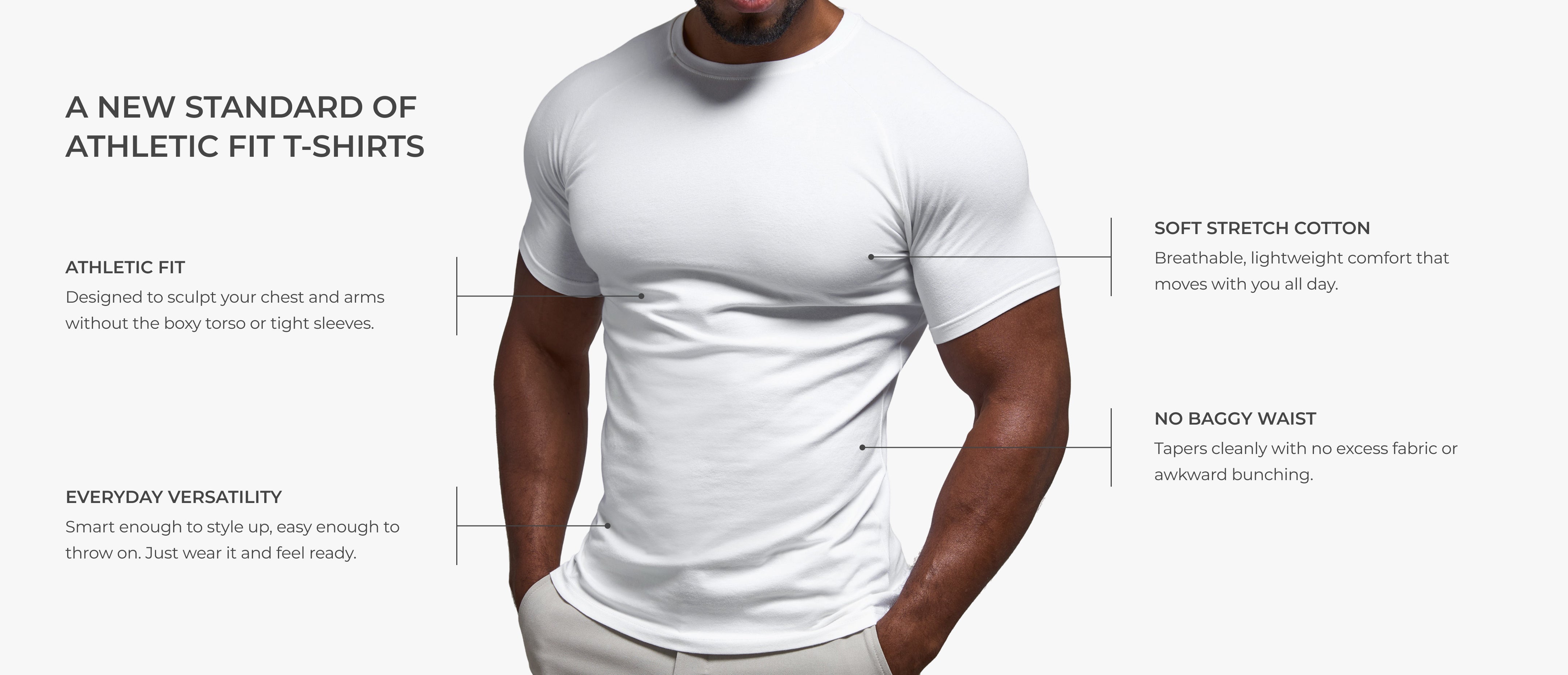 Finally—a T-Shirt that combines Athletic fit with smooth premium feel. Crafted from 100% mercerised cotton, it delivers a subtle sheen and a luxuriously soft, silky handfeel while maintaining everyday durability.