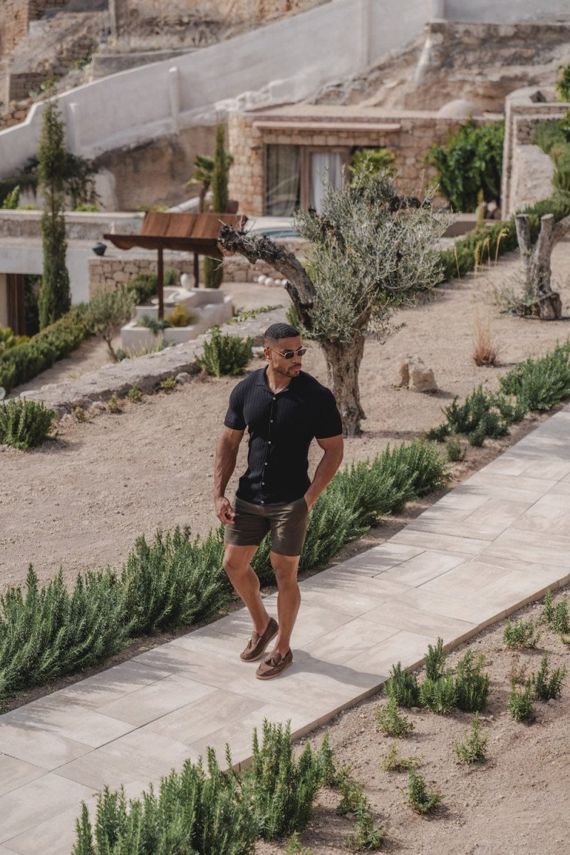 The Ribbed Knitted Shirt embodies understated elegance, tailored to perfection with our True Muscle Fit. Crafted from luxurious 100% Cotton yarn, it boasts a fine texture and ensures a soft touch against your skin, while enhancing breathability and overall comfort. The Cuban collar and button-down design refine this classic piece, adding a subtle retro vibe while maintaining a modern and stylish aesthetic.
