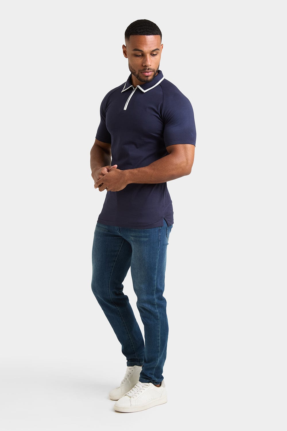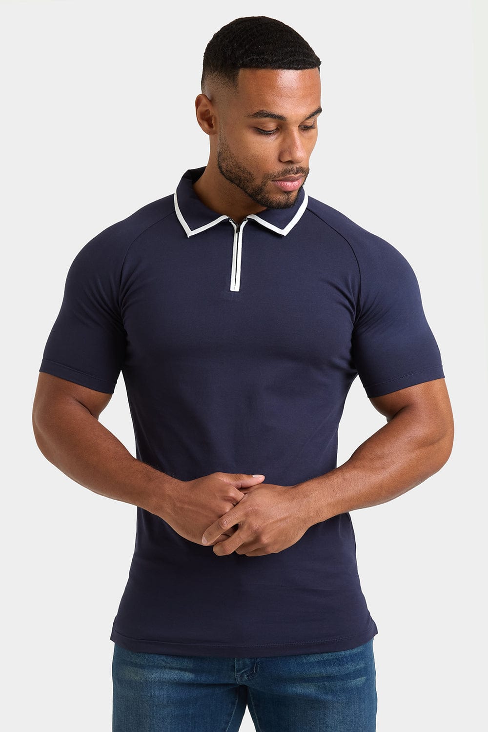 Embrace the perfect blend of classic style and modern sophistication with our reinvented Classic Polo Shirt. Now featuring a sleek zip neck and stylish contrast tipping at the collar and zip pocket, this Polo Shirt is designed with Raglan-Cut Sleeves to enhance your physique and offer a True Muscle Fit that exudes confidence. Crafted from premium fabric with natural stretch, it ensures maximum comfort and flexibility.